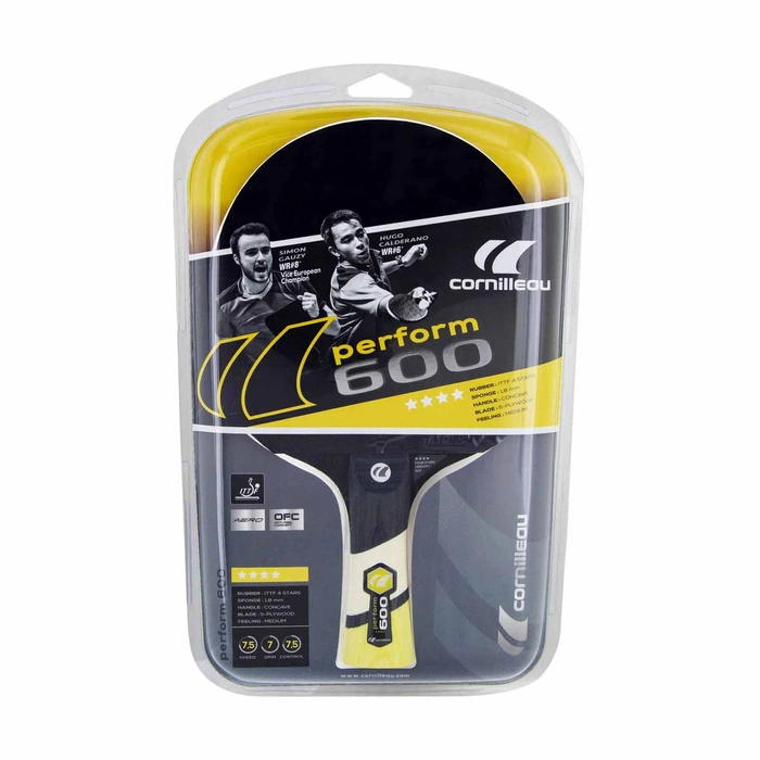 PERFORM 600 to nowa rakietka do tenisa stołowego renomowanej marki Cornilleau. Zastosowane technologiea AERO SOFT i OFC zapewniają doskonały kontakt i kontrolę piłki. Budowa deski i okładziny gwarantuje spójną trajektorię i rotację przy każdym uderzeniu. To doskonała rakietka do regularnej gry, polecana dla zawodników ALL/OFF.