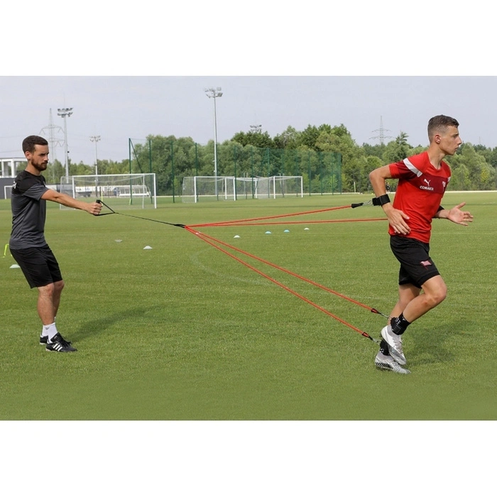 Każdy zestaw składa się z 4 regulowanych pasów na ręce i nogi. Umożliwia to dostosowanie gumy zarówno dla dorosłych zawodników jak i młodzieży. Guma dostarcza opór 18 kg.