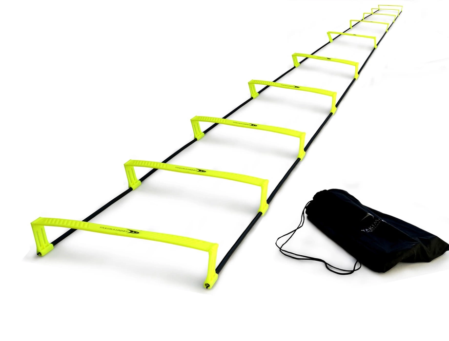 Dostępna u nas drabinka koordynacyjna jest przydatnym elementem codziennych treningów. Jej zalety doceniają nie tylko zawodnicy piłki nożnej ale też biegacze czy zawodnicy sztuk walki. Z jej pomocą wykonasz trening poprawiający szybkość, kondycje ruchową, osiągniesz wyższy poziom równowagi, popracujesz nad zwinnością oraz wzmocnisz mięśnie.