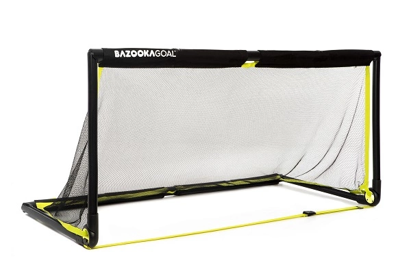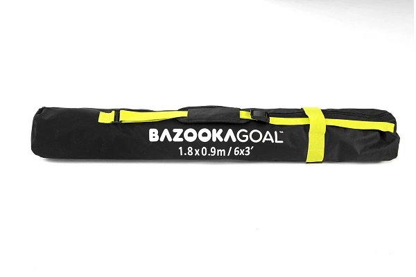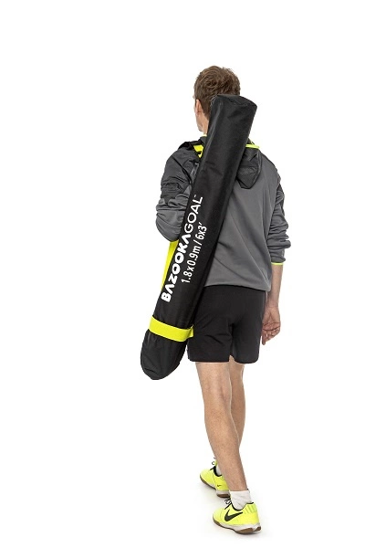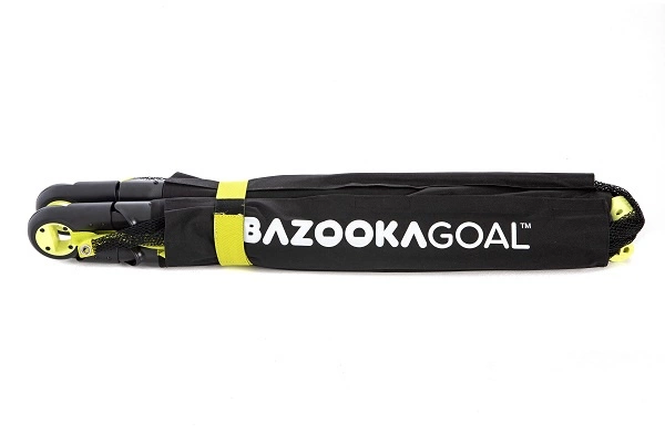 Bramka o wymiarach 180 na 90 cm to największa bramka w całej rodzinie marki BazookaGoal . Zastosowano w niej nowoczesny system, który polega na składaniu poprzeczki FLIP, który został zamontowany pozwala uzyskać mały rozmiar bramki po złożeniu, dzięki czemu akcesorium jest łatwe w transporcie. Wytrzymała, rozkładana bramka, idealnie znajdzie zastosowanie tam gdzie boisko wymaga elastycznej zmiany. Teleskopowa oraz solidna rama wmontowana do bramki gwarantuje pełną satysfakcję oraz gwarancje długiej żywotności produktu. Dzięki zwisom sprężynowym bramka jest gotowa w zaledwie 30 sekund. Nie ma konieczności przymocowania bramki do podłoża czy też obciążania jej. Produkt BazookaGoal jest dla każdego czy to dla osoby małoletniej czy dorosłego człowieka. Sprawdzi się na każdej nawierzchni miękkiej oraz twardej. Rozmiary bramki to 180 na 90 na 90 cm. Wymiary po złożeniu 90 na 20 na 20 cm. Ogólna waga bramki to 9 kg. W zestawie producent oferuje wytrzymałą torbę transportową oraz 8 złączek.