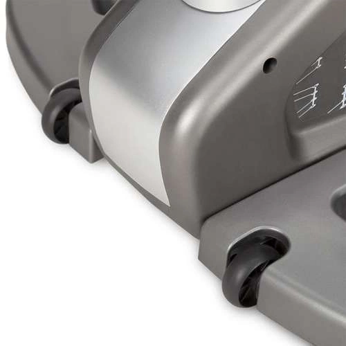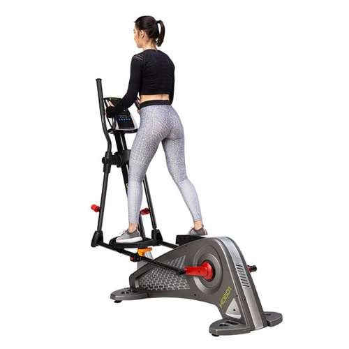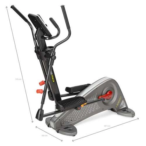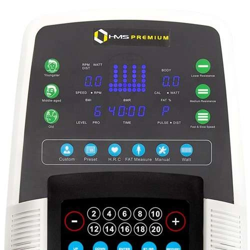 Wśród wyposażenia znalazł się komputer z czytelnym wyświetlaczem LED i dużymi przyciskami, który zaprezentuje pokonany dystans, czas, puls czy spalone kalorie. Do tego mamy 27 różnorodnych programów treningowych, wejście audio oraz wbudowane głośniki czy miejsce na bidon z napojem. Orbitrek HMS H0601 posiada również regulację konta nachylenia pedałów co wpływa na zwiększone zaangażowanie mięśni czworogłowych uda oraz łydek podczas sesji treningowej.