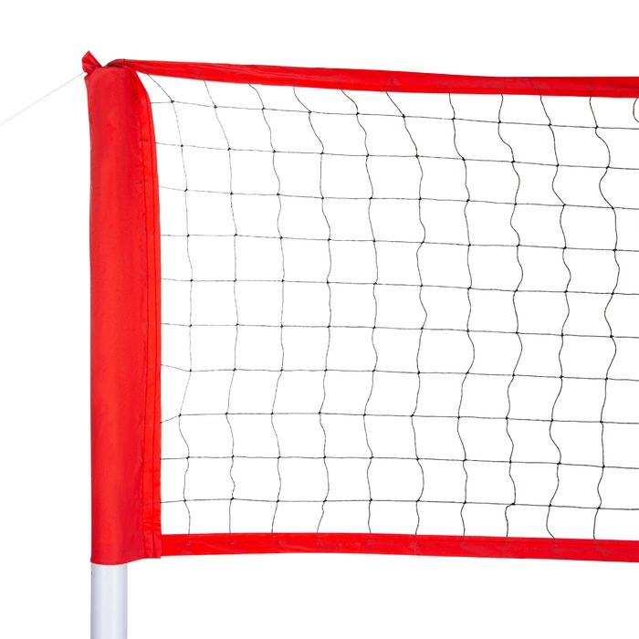 Siatka wykonana jest z trwałych materiałów, odpornych na warunki atmosferyczne. Całość jest bardzo łatwa i szybka w montażu. Do plastikowych podstaw należy nalać wody lub nasypać piasku aby konstrukcja była stabilna. Dodatkową stabilność zapewnią linki mocujące dołączone do zestawu.