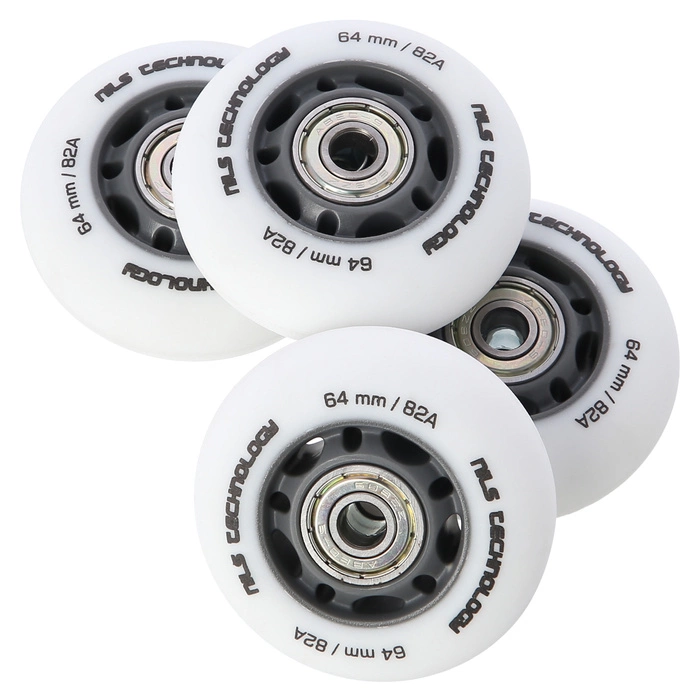Kółka PU 64x24 82A białe matowe (4 szt.) + łożyska ABEC-9 (8 szt.) zestaw NILS EXTREME
