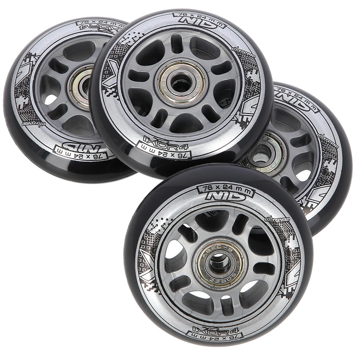 Kółka PU 76x24 82A czarne N (4 szt.) + łożyska ABEC-9 (8 szt.) zestaw NILS EXTREME