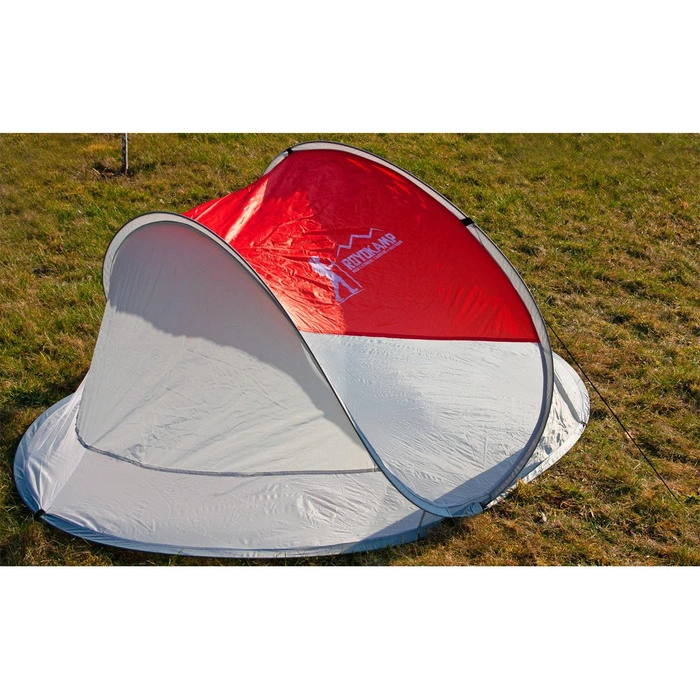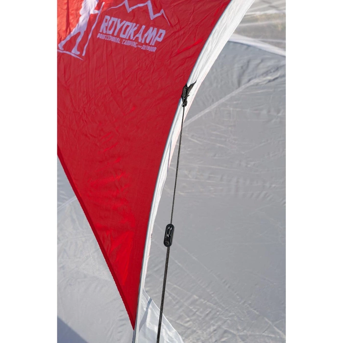 Namiot, parawan plażowy marki Royokamp został wykonany z odpornych i wytrzymałych materiałów technicznych: podłoga z folii poliester 110g/m2, a powierzchnia namiotu z poliestru 190T. Dzięki temu zapewniają skuteczną ochronę przed promieniowaniem UV 20+. Namiot mierzy 190 cm długości, 90 cm szerokości oraz 86 cm wysokości. Stelaż został wykonany z włókna szklanego 5 mm. W bocznych częściach namiotu zostały umieszczone wstawi z siatki, które umożliwiają prawidłową wentylację.