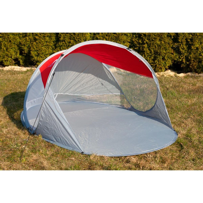 Namiot przeznaczony jest do samodzielnego składania. Montaż, jak i demontaż produktu jest bardzo prosty. W zestawie oprócz osłony plażowej i pokrowca znajduje się również instrukcja obsługi, a także śledzie do przytroczenia do podłoża. Całość jest bardzo lekka, co umożliwia swobodny transport namiotu, który można spakować wygodnie do dołączonego pokrowca.