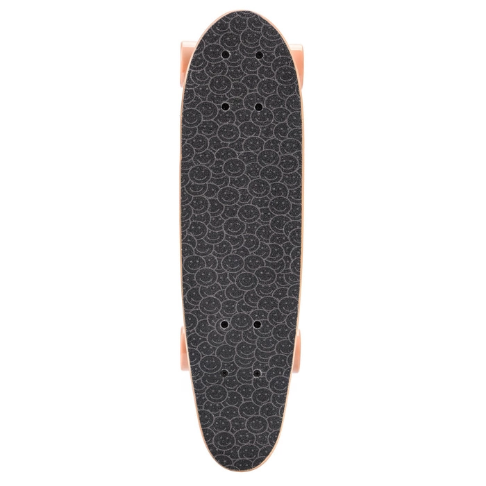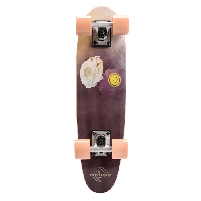 Deskorolka Meteor Smile ma bardzo porządną i wytrzymałą konstrukcję. Zaprojektowana jest ona aż z siedmiu warstw klonu chińskiego oraz klonu kanadyjskiego, dzięki czemu charakteryzuje się długą żywotnością. Posiada ona antypoślizgową powierzchnię, dzięki czemu zapewnia bezpieczną i komfortową jazdę. Zapewnia również doskonałą przyczepność w każdych warunkach atmosferycznych. Co ważne, zabezpiecza ona również użytkownika sprzętu przed zsunięciem się z deskorolki. Wyposażona jest ona w miękkie kółka, które niwelują drgania drogowe. Zaprojektowane są one z wysokiej jakości poliuretanu. Deskorolka Meteor Smile waży jedyne 1,7 kilograma. Jest bardzo lekka, zatem z łatwością można ją przetransportować. Maksymalne obciążenie sprzętu wynosi aż 100 kilogramów. Wyżej wymieniony sprzęt nadaje się między innymi do jazdy po miejskich ulicach jak i również do przemierzania nierównych chodników. Nie odkształca się on w czasie upadku jest odporny na uszkodzenia. Odznacza się on ciekawym designem i nowoczesnym wzornictwem.