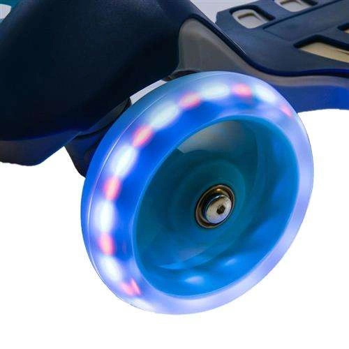 HULAJNOGA METEOR TRÓJKOŁOWA SLOPER to nowoczesny produkt o ciekawym wzornictwie, przeznaczony dla dzieci, których waga nie przekracza 50 kg. Regularne korzystanie z hulajnogi wpływa na poprawę koordynacji ruchowej oraz równowagi dziecka. Do wytworzenia sprzętu producent użył aluminium oraz tworzyw sztucznych. Wszystkie połączenia wykonane zostały przy użyciu stalowych śrub. Hulajnoga wyposażona została w dwa poliuretanowe koła umieszczone z przodu oraz jedno tylne koło z PVC. Średnica kół przednich wynosi 120 mm, a tylnego 100 mm. Trójkołowa konstrukcja zapewnia równowagę i ułatwia manewrowanie podczas jazdy, a hamulec nożny pozwala na szybkie zatrzymanie sprzętu. Kierownica hulajnogi z systemem regulacji wysokości umożliwia dostosowanie jej położenia do wzrostu użytkownika. Uchwyty z miękkiego i trwałego tworzywa TPR dobrze przylegają do dłoni. Dodatkowy element wyposażenia stanowią diody led umieszczone w przednich kołach, które świecą podczas jazdy. Sprzęt dostępny w różnych kolorach.