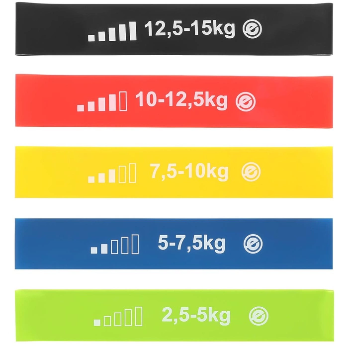 Zestaw gum do ćwiczeń fitness crossfit mini band 5W1 Eb fit to wysokiej jakości produkt, który sprawdzi się zarówno podczas ćwiczeń, jak i rehabilitacji. Gumy mogą być z powodzeniem wykorzystywane do treningów oporowych, wytrzymałościowych, a także stretchingu. Do ich wykonania producent użył lateksu, który charakteryzuje się dużą elastycznością oraz wytrzymałością. Pięć gum w różnych kolorach zapewnia osobie ćwiczącej różny poziom obciążenia. Wyraźne oznaczenia umieszczone na ich powierzchni znacząco ułatwiają użytkownikom kontrolę obciążeń. Całkowita długość pojedynczej gumy wynosi około 62 cm, a jej szerokość to 5 cm. W skład zestawu wchodzi praktyczny woreczek ułatwiający przechowywanie i transportowanie gum. Produkt charakteryzuje się atrakcyjną kolorystyką.