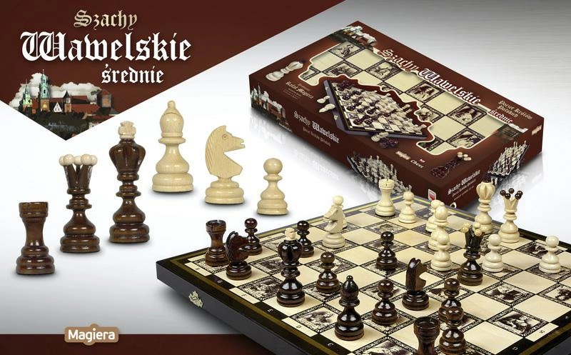 Szachy to strategiczna gra planszowa rozgrywana przez dwóch graczy. Plansza składa się z 64 pól szachownicy. Gra ta jest uznawana za rodzaj sportu. Nazwa Wawelskie pochodzi od tego, że na ciemnych polach szachownicy zostały przedstawione podobizny królów Polski (począwszy od Mieszka I, aż po Stanisława Augusta Poniatowskiego). Szachownica, jak i pionki są wykonane z dobrej jakości drewna. Wymiary szachownicy to 43 x 43 cm, a pola mają wymiary 40 na 40 mm. Dzięki temu są trwałe i odporne na uszkodzenia, nawet w momencie, gdy upuścimy produkty. Samo wnętrze kasety, w której przechowywane są pionki jest koloru zielonego, o wymiarach 345 na 350 cm. Figuranty są wykonane z dbałością o najmniejsze szczegóły. Warto wspomnieć, że nie są one luźno osadzone w kasecie, bowiem posiadają odpowiednie wgłębienia, w które możemy je ułożyć. Sama gra uczy logicznego myślenia, gdyż musimy obstawiać dobre strategie, przewidywać dalsze konsekwencje gry.