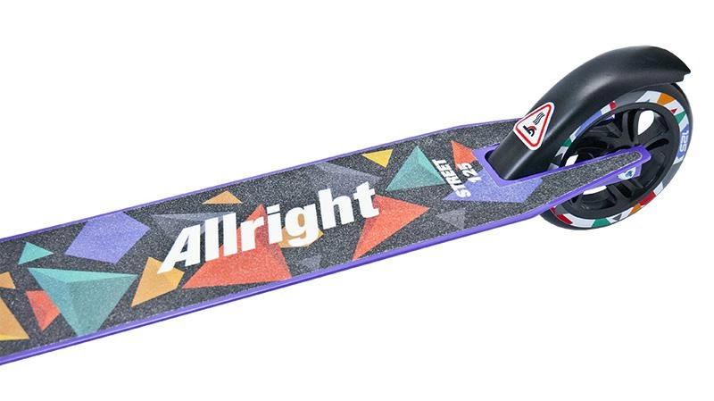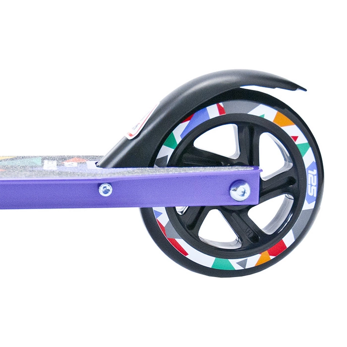 Hulajnoga street 125 to świetne rozwiązanie do szybkiego przemieszczania się w mieście, w parku albo po prostu do wspaniałej zabawy ze znajomymi. Hulajnoga przeznaczona jest dla dzieci i młodzieży. Jej maksymalny udźwig to 50 kg. Hulajnogę można w łatwy i szybki sposób złożyć, dzięki czemu nie będzie zajmowała wiele miejsca w bagażniku. Hulajnoga posiada regulowaną wysokość kierownicy, dzięki czemu można ją dopasować do wzrostu dziecka. Koła hulajnogi wyposażone są w łożyska ABEC-9, które zbudowane są z innowacyjnych materiałów i zapewniają optymalne obroty koła. Koła wykonane są z tworzywa PU. Średnica kół to 125mm. Tylne koło posiada hamulec, który jednocześnie pełni funkcję błotnika i skutecznie ochrania przed ochlapaniem. Hulajnoga wykonana z wysokojakościowych materiałów, spełniająca standardy bezpieczeństwa.