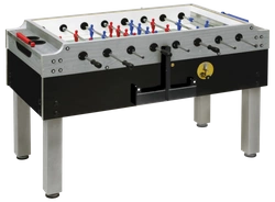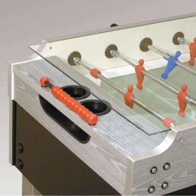 Stół piłkarzyki na żetony Olympic Silver to najwyższej jakości sprzęt przeznaczony dla miłośników tej odmiany piłki nożnej. Stół o długości 150 cm, szerokości 76 cm oraz wysokości 90,5 cm zapewnia użytkownikom mnóstwo frajdy i zabawy. Obudowa wykonana została z solidnej wielowarstwowej sklejki pokrytej z zewnątrz laminatem w kolorze czarnym oraz odcieniach szarego dębu. Odpowiednią stabilność całej konstrukcji zapewniają metalowe nogi o wymiarach 9x9 cm wyposażone w system regulacji wysokości. Do wykonania pola gry odwzorowującego boisko piłkarskie producent użył hartowanego szkła o grubości 5 mm z matowym piaskowaniem. Jednokolorowe imitacje zawodników wytworzono z tworzywa sztucznego moplenu. Osie z ciągnionej stali o średnicy 16 mm charakteryzują się zwiększoną odpornością na skręcanie. W skład zestawu wchodzi 10 pomarańczowych piłek. Dodatkowy element wyposażenia stanowią również praktyczne otwory pełniące funkcję uchwytów na napoje.