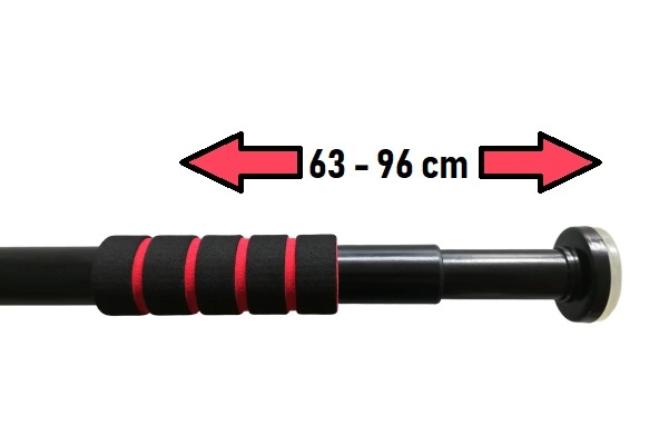 Drążek rozporowy do podciągania 63 - 96 cm to świetna propozycja dla wszystkich tych, którzy pragną ćwiczyć, a którym nie po drodze z siłownią. Łatwe mocowanie pozwala zamontować go w każdej futrynie drzwi, a regulowana długość umożliwia idealne dopasowanie do futryny. Znajdujące się na końcach drążka gumowe podkładki, skutecznie uniemożliwiają zsuwanie się go z ościeżnicy drzwi, czyniąc trening bezpiecznym. Konstrukcja drążka wykonana została z solidnej stali, a piankowe uchwyty sprawiają, że dłonie nie ześlizgują się z drążka. Drążek, w zależności od potrzeb i planowanego treningu, umiejscowić możemy wysoko, jak i nisko. Wysokie zamontowanie go na futrynie umożliwia podciąganie się czy unoszenie kolan, by wzmacniać miejsce brzucha, zaś niższe na, na przykład, pompki z podwyższeniem.Producent zadbał o solidność i jakość wykonania tak, by zapewnić możliwie maksymalne bezpieczeństwo. Solidna, stalowa konstrukcja jest niezwykle trwała i odporna na ewentualne zginanie oraz umożliwia na korzystanie z drążka osobie o maksymalnej wadze 100 kg.