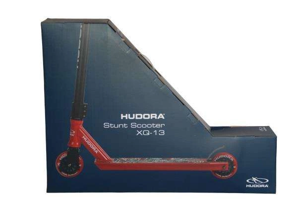 Hulajnoga Hudora Stunt XQ-12 to produkt dla tych, którzy chcą postawić pierwsze kroki w sporcie wyczynowym. Jednoczęściowa kierownica jest solidną konstrukcją, połączoną potrójnym zaciskiem oraz wzmocnionym deckiem. Pojazd świetnie sprawdza się do próbowania nowych trików,  skoków a nawet wyczynów  na rampach. Kierownica (typ BMX) dodatkowo posiada możliwość obrotu do 360 stopni, co pozawala na pełen zakres ruchów. Produkt wyposażony jest w koła ze średnicą 100 mm, wzmocnione obręcze i łożyska chromowane ABEC 7, zapewniające wysoki komfort i płynność użytkowania. Warto zauważyć, iż w hulajnodze zastosowano system kompresji HIC, składający się z widelca bezgwintowego z nakrętką gwiazdkową, bezgwintowego headsetu, podkładki i ponadwymiarowej kierownicy ze szczeliną. Do gotowości do użytku sprzętu potrzeba jedynie przykręceni śruby znajdującej się wewnątrz widelca, nasadzenie oraz dokręcenie kierownicy. Rama wykonana została z aluminium, natomiast pojazd jest dostosowany do użytkowania dorosłego lub młodzieży do 100 kg.