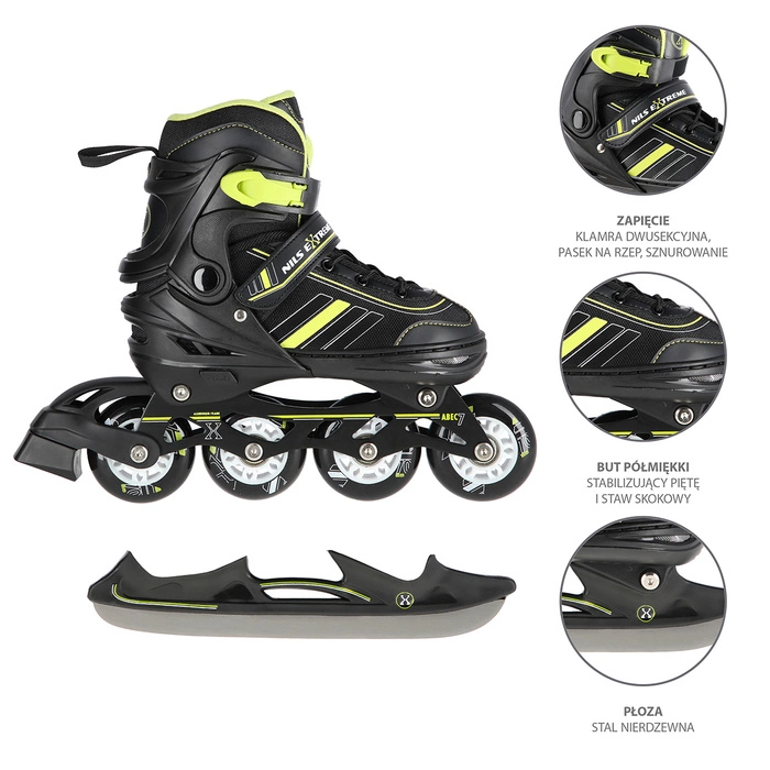 Łyżworolki z wym. płozą hokejową Nils Extreme NH18191 2w1 czarno-limonkowy rozm.L(39-43)