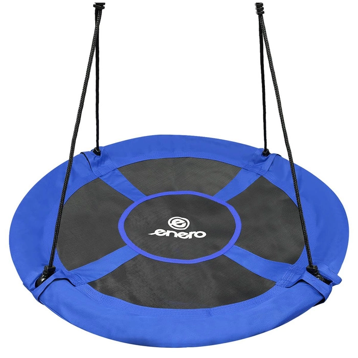 Huśtawka bocianie gniazdo XXL marki Enero została wykonana z rur metalowych powleczonych pianką pochłaniającą drgania. Siatka PP, która jest siedziskiem, została osadzona na metalowej ramie z pianką wokoło. Siedzisko mocowane jest za pomocą plecionych lin o grubości 10 mm, które zapewniają udźwig do 150 kg. Montaż sprzętu przebiega szybko i bezproblemowo. Wszystkie niezbędne elementy znajdują się w zestawie.