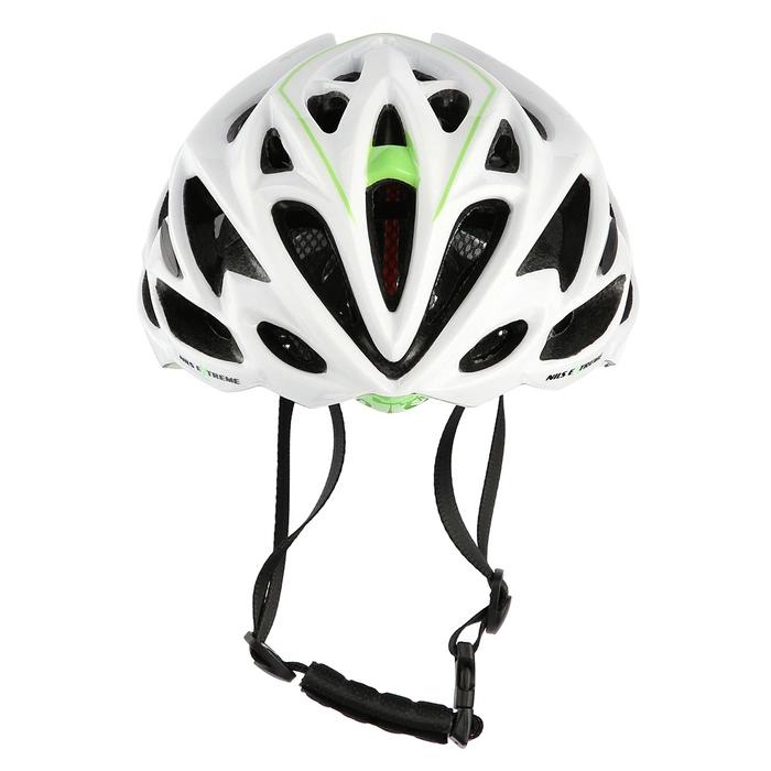 Kask Nils Extreme MTW58 w kolorze biało-zielonym zapewni bezpieczeństwo podczas jazdy na rowerze, rolkach, deskorolce czy hulajnodze. Model wykonano w technologii in-mold, charakteryzującą się skorupą o dużej wytrzymałości, doskonale radzącej sobie ze wstrząsami. Kask posiada regulację obwodu ułatwiającą dopasowanie oraz pasek z klamrą. Kask cechuje niewielka waga oraz system otworów wentylacyjnych.