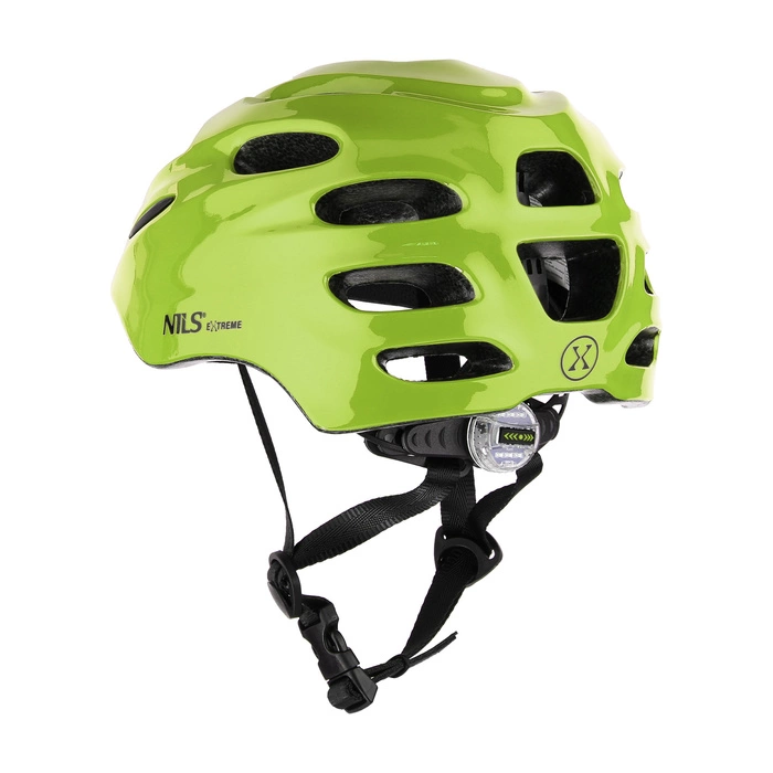 Nils Extreme MTW01 led to dziecięcy kask dostępny w kolorze zielonym lub różowym i w jednym z dwóch rozmiarów - 2XS (44-49) lub XS (48-52). W modelu zastosowano technologię Out-mold, gdzie skorupa zewnętrzna i wewnętrzna nie są ze sobą trwale połączone (siła uderzenia jest rozproszona przez zewnętrzną powłokę). Kask posiada regulację obwodu, regulowany pasek z klamrą oraz lampkę led umieszczoną w tylnej części kasku, zwiększającą widoczność dziecka. Kask nadaje się na rower, rolki, deskorolkę czy hulajnogę. Model cechuje niewielka waga.