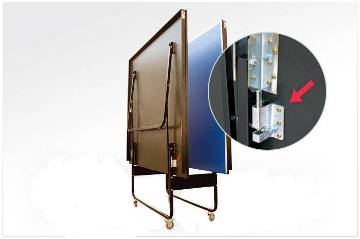 Całość posiada stalową konstrukcję malowaną proszkowo, dzięki czemu jest ona odporna na zdzieranie i zniszczenia pod wpływem użytkowania. W celu ułatwienia składania stołu, a także bezpieczeństwa podczas tego procesu w zestawie znajdują się cztery zamki, a także cztery blokady nóg. Dla dodatkowej ochrony i bezpieczeństwa użytkownika stół ma podwójne zabezpieczenia zarówno przy złożonym, jak i rozłożonym stole.