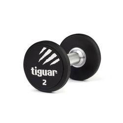 Hantle tiguar wykonane są z wytrzymałego, najwyższej jakości poliuretanu PU odpornego na uszkodzenia mechaniczne. Linia tiguar PU dumbbells charakteryzuje się gryfikami prostymi o jednakowej długości (15,2 cm) i radełkowanej powierzchni, dzięki czemu poliuretanowe hantle tiguar gwarantują pewność chwytu podczas wykonywanych ćwiczeń niezależnie od wybranej wagi.