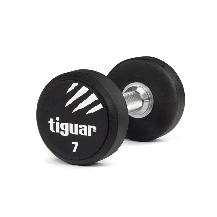 Hantle tiguar wykonane są z wytrzymałego, najwyższej jakości poliuretanu PU odpornego na uszkodzenia mechaniczne. Linia tiguar PU dumbbells charakteryzuje się gryfikami prostymi o jednakowej długości (15,2 cm) i radełkowanej powierzchni, dzięki czemu poliuretanowe hantle tiguar gwarantują pewność chwytu podczas wykonywanych ćwiczeń niezależnie od wybranej wagi.