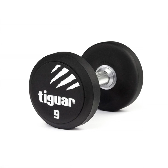 Hantle tiguar wykonane są z wytrzymałego, najwyższej jakości poliuretanu PU odpornego na uszkodzenia mechaniczne. Linia tiguar PU dumbbells charakteryzuje się gryfikami prostymi o jednakowej długości (15,2 cm) i radełkowanej powierzchni, dzięki czemu poliuretanowe hantle tiguar gwarantują pewność chwytu podczas wykonywanych ćwiczeń niezależnie od wybranej wagi.