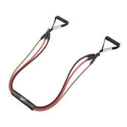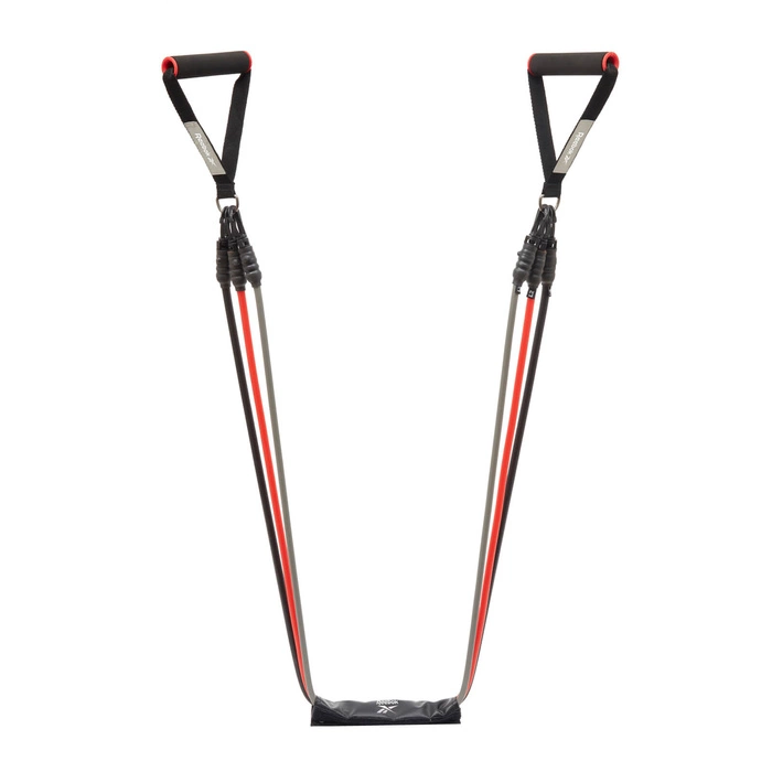 Zestaw gum fitness Power Tube marki Reebok przeznaczony jest do ćwiczeń ogólnorozwojowych, ujędrniających i rzeźbiących sylwetkę. Idealnie nadaje się do treningu zarówno górnych, jak i dolnych partii mięśni. Zawiera 3 kolorowe odłączane gumy (szarą, czarną i czerwoną), za pomocą których można regulować siłę oporu (maksymalnie 12,5 kg) i dopasować ją do aktualnie wykonywanych ćwiczeń.