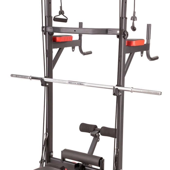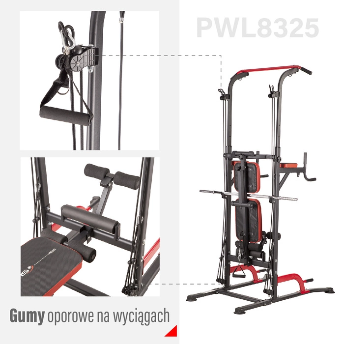 HMS PWL8325 to nie tylko klasyczna ławka pod sztangę, ale także kompleksowe stanowisko do treningu całego ciała. Na wyciągach zamontowano gumy oporowe, które pozwalają rozszerzyć zakres ćwiczeń o trening oporowy – idealny dla osób chcących poprawić siłę, wytrzymałość i mobilność. Dodatkowe haki umożliwiają bezpieczne odłożenie sztangi po zakończonej serii, a podpórki do pompek pozwalają wykonywać ćwiczenia na triceps czy klatkę piersiową z wykorzystaniem własnej masy ciała. Prasa na nogi z maksymalnym obciążeniem 150 kg to kolejna funkcjonalność, która umożliwia rozwój dolnych partii mięśniowych bez potrzeby korzystania z dodatkowych urządzeń. Dzięki temu każdy trening może być kompleksowy i dostosowany do indywidualnych celów użytkownika.