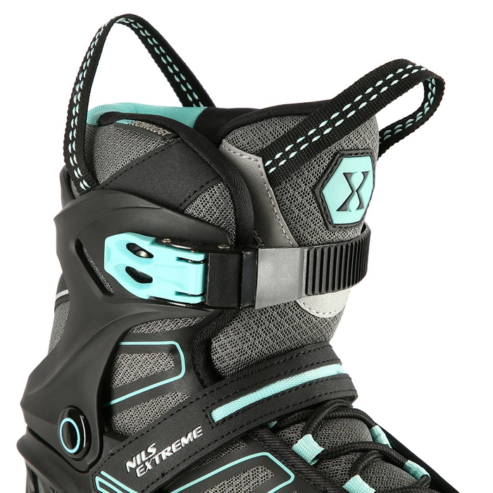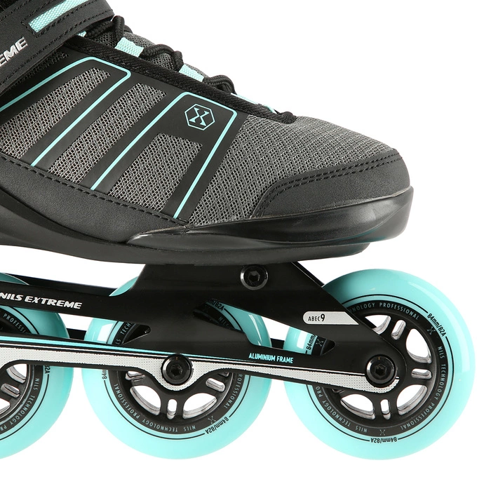 Łyżworolki NA14217 NILS EXTREME to sprzęt przeznaczony dla młodzieży i dorosłych. Charakterystyczną cechą tego modelu jest jednoczęściowa aluminiowa płoza wykonana techniką odlewu ciśnieniowego, która wyróżnia się trwałością i stabilnością. Półmiękki but wyposażono w system zapięcia na klamry, rzepy oraz sznurówki. Miękka wkładka z pianki EVA zapobiega nadmiernemu poceniu się stóp. Poliuretanowe kółka o wymiarach 80x24 mm oraz łożyska ABEC 9 zapewniają znakomity komfort jazdy.