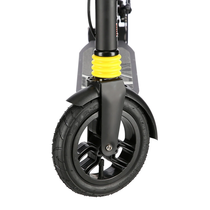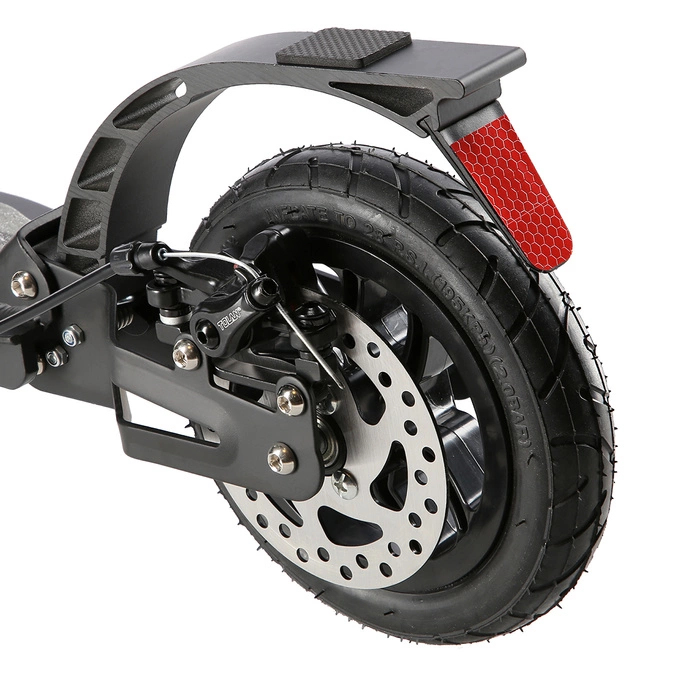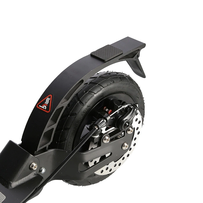 Hulajnoga posiada dodatkowy ręczny hamulec tarczowy umieszczony na tylnym kole. Dzięki niemu otrzymujemy dużo większą, niż w przypadku klasycznego nożnego hamulca, siłę hamowania. Umieszczenie go na kierownicy sprawia, że jest on dużo bardziej intuicyjny niż hamulec nożny, jest także dużo szybszy w użyciu. A co najważniejsze zastosowanie takiego rozwiązania powoduje bezpieczeństwo jazdy, nawet po mokrej nawierzchni. Dodatkowo zamontowane błotniki zapobiegają ochlapaniu.