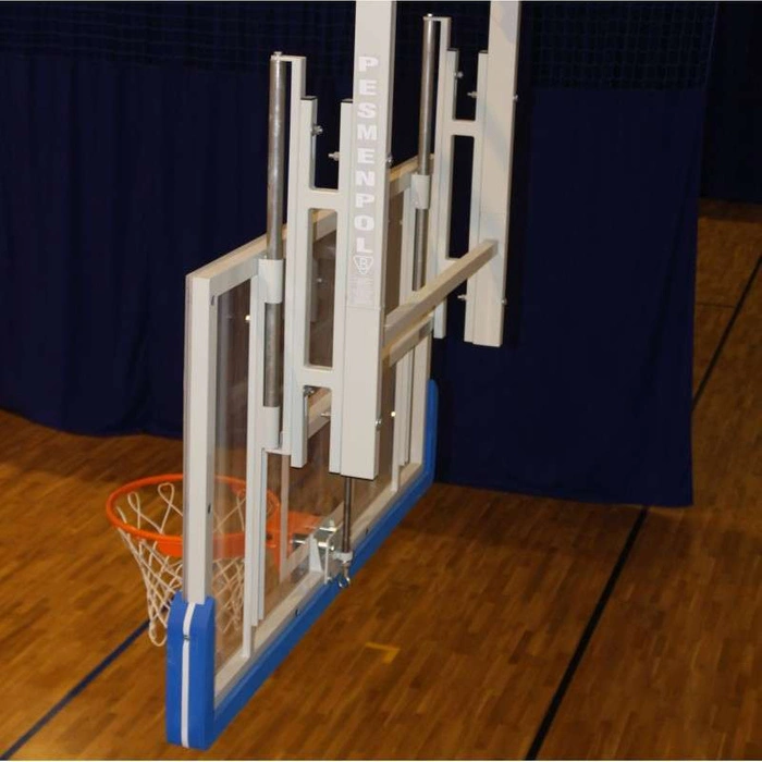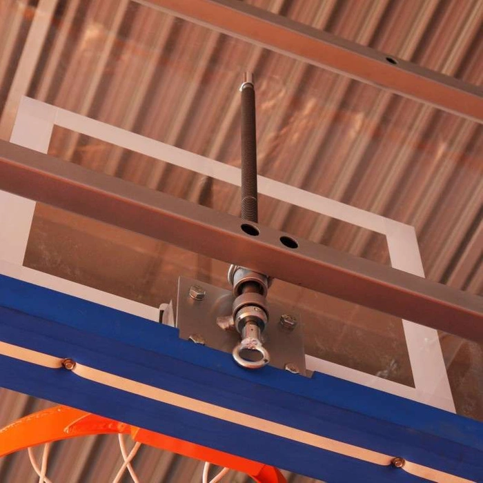 Mechanizm regulacji wysokości do tablic do koszykówki 90x120 cm. Konstrukcja mechanizmu pozwala łatwo i szybko zmienić wysokość tablicy wraz z obręczą w stosunku o podłoża w przedziale 260 – 305 cm. Dokonuje się tego przez ręczne obracanie korbką regulacyjną uchwytu śruby pociągowej.