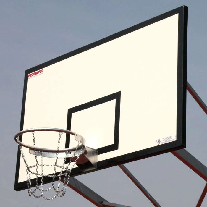 Tablica do koszykówki profesjonalna o wymiarach 105x180 cm, zbudowana z nieprzeźroczystej płyty epoksydowej o grubości 18 mm, w odpowiedni sposób mocowanej do metalowej ramy, zabezpieczonej antykorozyjnie poprzez cynkowanie ogniowe. Zastosowane mocowanie obręczy do ramy tablicy uniemożliwia przenoszenie na płytę tablicy obciążeń, działających na obręcz. Tablica przeznaczona do zastosowania na boiskach zewnętrznych.