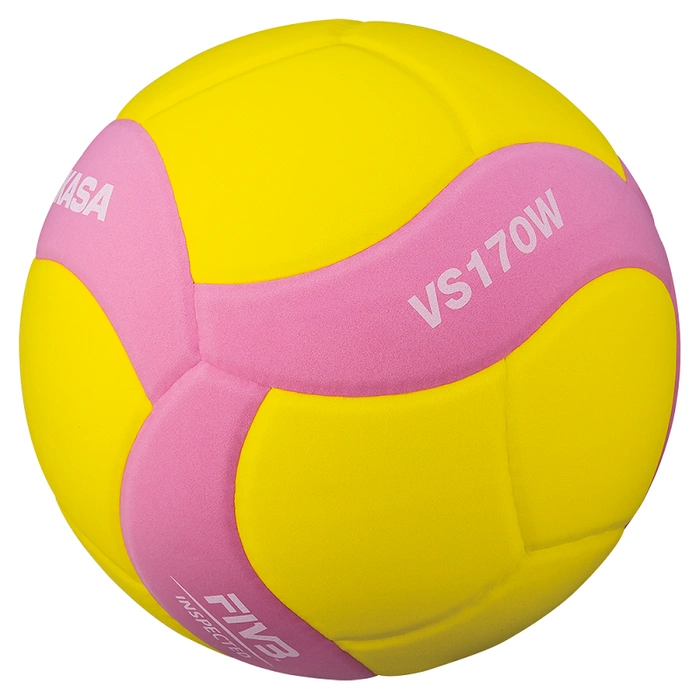 Piłka do siatkówki Mikasa VS170W to produkt, miękki i elastyczny. Powłoka wykonana z pianki EVA, w dotyku przypominająca skórkę z brzoskwiń, zapewnia wysoki komfort gry. Dzięki temu jakość odbicia jest wysoka, a ból zniwelowany. Składająca się z 18 paneli, ważąca około 170 gram, daje świetną lotność oraz pozwala precyzyjnie wymierzyć jego kierunek. Posiada certyfikat Official FIVB Inspected, jako uznanie oficjalnej piłki dla dzieci. Przeznaczona jest dla osób początkujących w odbijaniu, a także do nauki gry w siatkówkę. Obwód piłki to 65-67 cm, a jego oznaczenie to 5. Mikasa VS170W jest lżejszym i bardziej miękkim odpowiednikiem piłek seniorskich do siatkówki. Atrakcyjne kolory (niebiesko-żółte), które zastosowano w produkcji piłki, przypominają wyczynową jej wersję, czyli Mikasa V200W. Dzięki pokryciu nylonowemu, produkt zachowuje swój okrągły kształt, nie pęka oraz jest odporny na zniszczenia. Butylowa dętka, pozwala szybko i sprawnie napompować piłkę, a odpowiednie klejenie zachowuje jakość na długi czas.