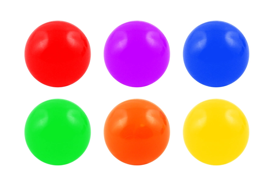 W zestawie znajdziecie piłeczki basenowe we wszystkich kolorach tęczy: czerwony, zielony, niebieski, żółty, fioletowy, pomarańczowy - idealnie pasują do zabaw z tęczową chustą animacyjną.