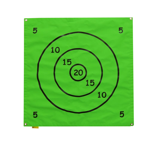 Matę o wymiarach 75 cm x 75cm z nadrukowaną tarczą i otworami ułatwiającymi montaż