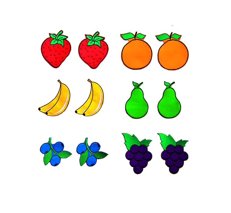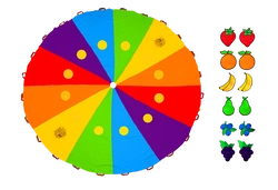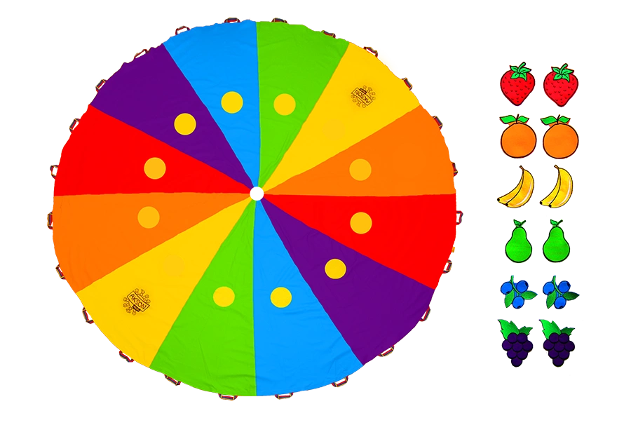 Dodatkowe elementy to zestaw owoców wykonanych z trwałego, kolorowego materiału z rzepem umożliwiającym przyczepianie i odpinanie na chuście. Kolorystyka owoców odpowiada kolorom na chuście, dzięki czemu nauka poprzez zabawę jest jeszcze łatwiejsza!