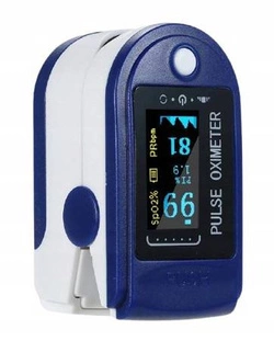 Wysokiej jakości napalcowy pulsoksymetr przeznaczony do odczytywania pomiarów PR (tętno) i SP02 (nasycenie krwi tlenem - saturacja).