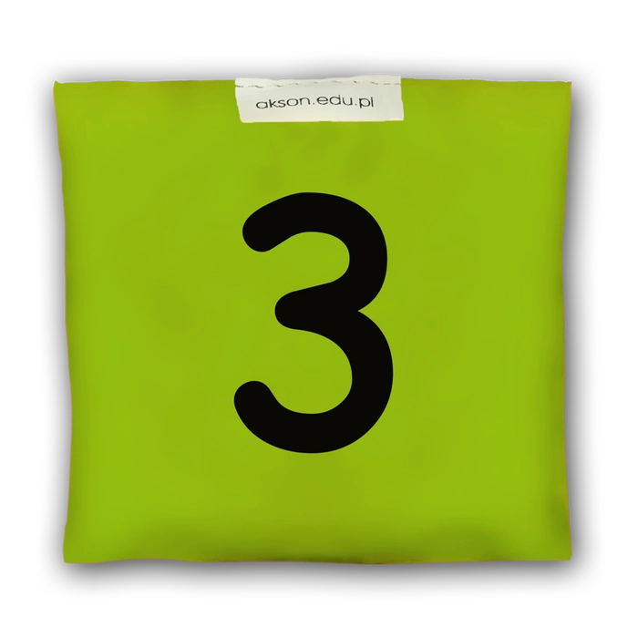 Woreczek gimnastyczny z nadrukiem z cyferką 3, szkolny Akson to wyjątkowa pomoc w czasie zabaw animacyjnych, dydaktycznych i zajęć korekcyjno-ruchowych.