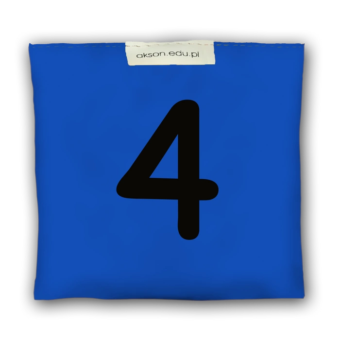 Woreczek gimnastyczny z nadrukiem z cyferką 4, szkolny Akson to wyjątkowa pomoc w czasie zabaw animacyjnych, dydaktycznych i zajęć korekcyjno-ruchowych.