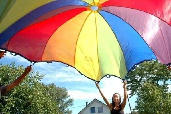 Poprzez bogactwo kolorów spadochron przyciąga wzrok, wzbudza zainteresowanie i zaciekawienie wszystkich uczestników zabawy. Rozwija refleks, koordynację, umożliwiając czerpanie radości płynącej z ruchu i przebywania w grupie.