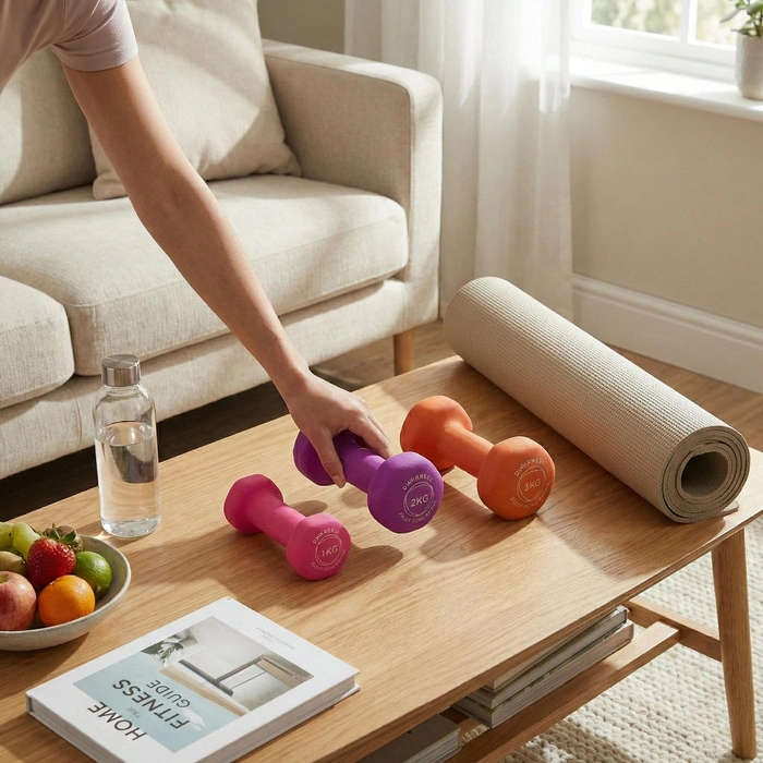 Hantel pokryty jest tworzywem PVC, co zapewnia bezpieczeństwo, ponieważ nie wyślizguje się z dłoni podczas energicznych treningów. Materiał ten jest odporny na wilgoć i nieco zmiękcza hantle, więc w razie upadku nie uszkodzą podłogi. Hantle pakowane są po 1 szt.