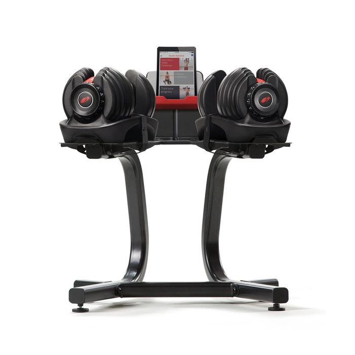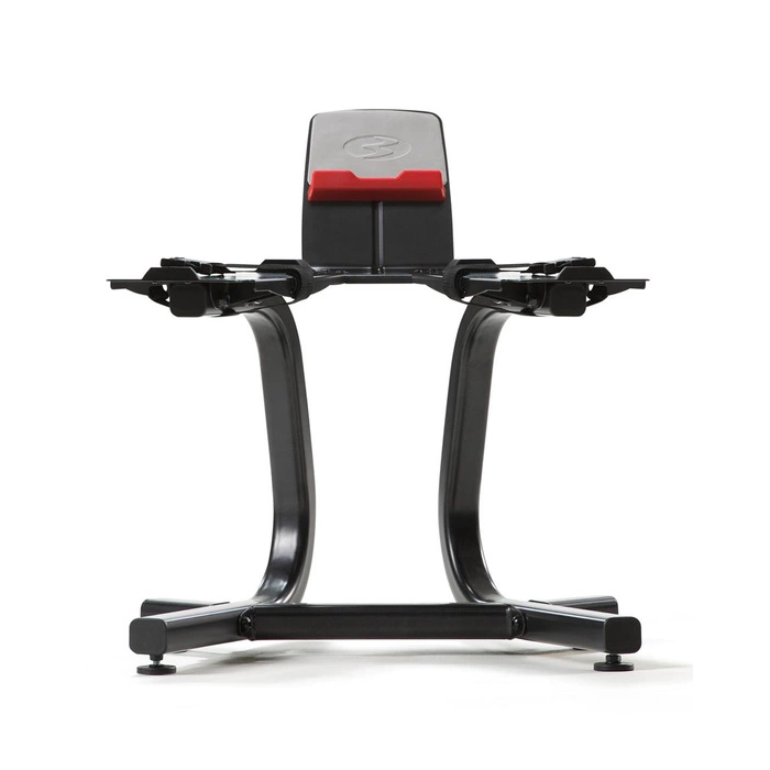 Stojak pod hantle SelectTech marki Bowflex  zaprojektowany jest tak, by przechowywanie hantli w domu było wygodne i nie wymagało dużo miejsca. Dodatkowo, stojak wyposażony jest w tackę pod urządzenia mobilne, dzięki czemu zawsze możesz mieć dostęp do filmów treningowych i materiałów marki Bowflex.