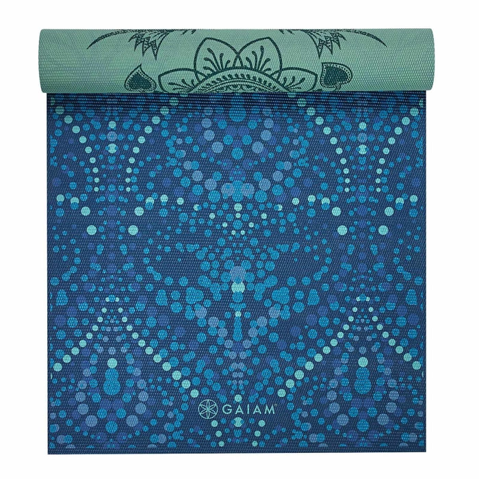 Udoskonal swoje ćwiczenia na dwustronnej macie Mystic Sky. Wybierz pomiędzy dwoma inspirującymi wzorami w niebieskich odcieniach. Pozwolą one na zróżnicowanie codziennych treningów, a symetryczne wzory ułatwiają przyjęcie odpowiedniej pozycji do ćwiczeń. 6mm grubości maty zapewnia dodatkową amortyzację, komfort i stabilność. Dzięki temu łatwiej utrzymasz się w miejscu podczas ćwiczeń. Mata wykonana jest z poddawanego recyklingowi tworzywa PVC, które jest wytrzymałe na rozdarcia i odporne na zabrudzenia. Mata posiada dożywotnią gwarancję, więc stanowi pewny zakup na lata.