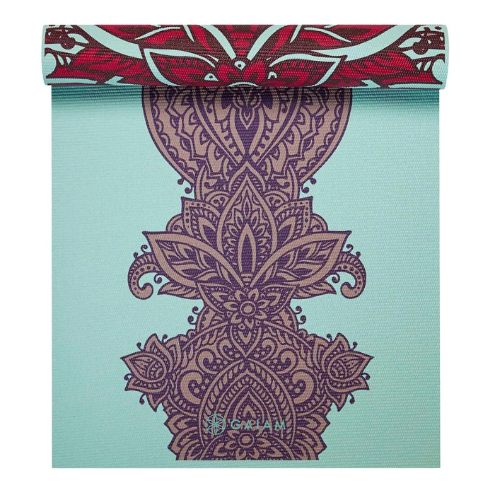 Ćwicz bezpiecznie i komfortowo dzięki macie do jogi o trwałej, antypoślizgowej powierzchni. Mata jest dwustronna co oznacza, że możesz wybrać, który wzór odpowiada Ci w danym momencie bardziej. 6 mm grubości zagwarantuje Ci dodatkową amortyzację i wsparcie. Dodatkowo grubość maty doskonale izoluje od podłoża w trakcie ćwiczeń czy medytacji. Żywa i kontrastowa kolorystyka nawiązująca do kultury Indii zainspiruje Cię do działania. Wzór maty jest symetryczny, przez co łatwiej będzie Ci przyjąć wybraną pozycję do ćwiczeń. Wyprodukowana z nieszkodliwego tworzywa, bez lateksu i szóstki najbardziej szkodliwych ftalanów, ta mata jest zdrowym wyborem zarówno dla Ciebie, jak i dla naszej planety. Wraz z zakupem zapewniony jest darmowy dostęp do zasobów biblioteki jogi na stronie internetowej.