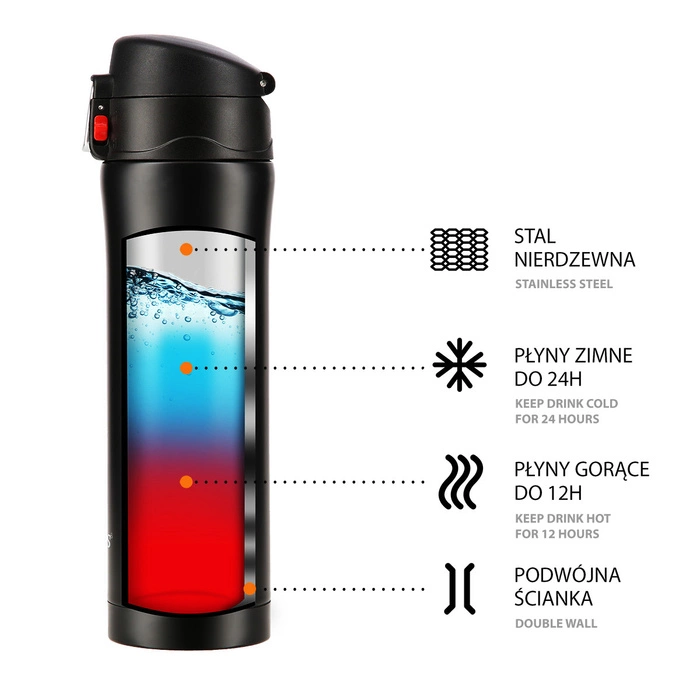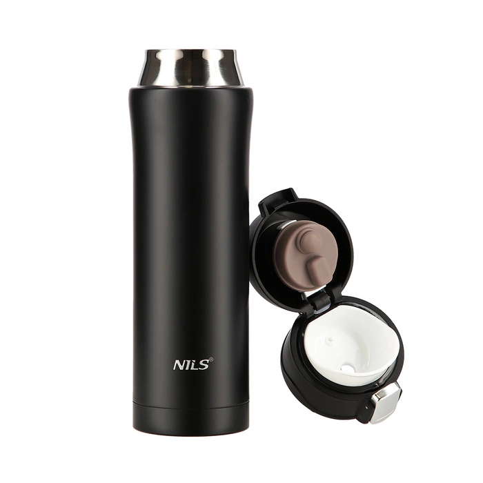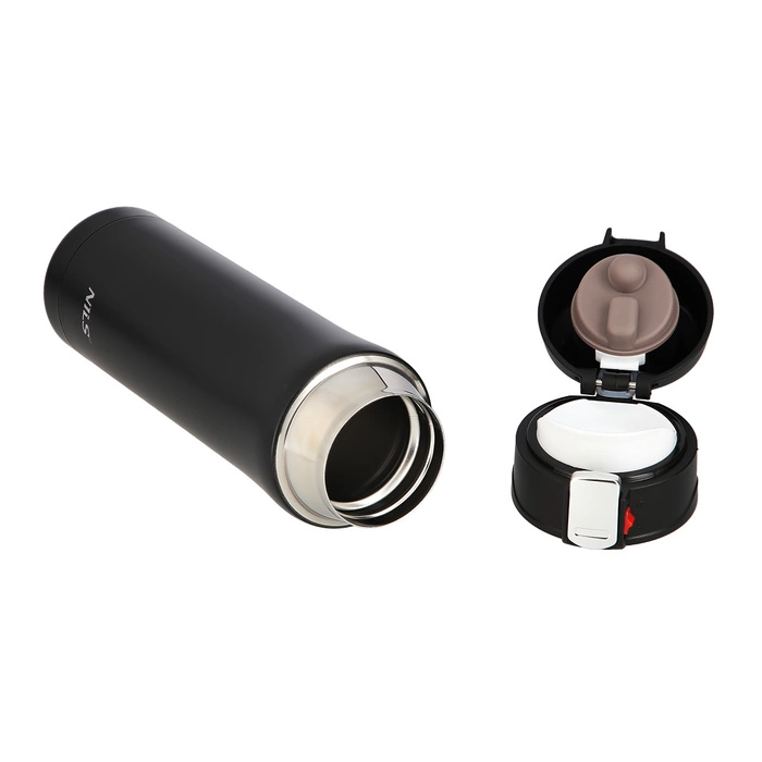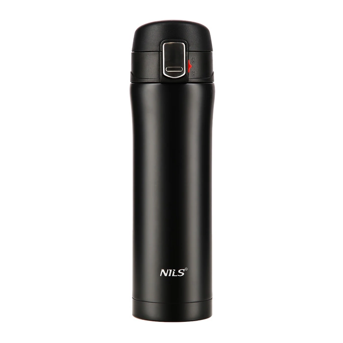 Kubek termiczny NCB10 marki Nils cechuje zarówno prosta konstrukcja jak i oryginalny design! NCB10 to kubek termiczny wykonany jest ze stali nierdzewnej o podwójnej ściance, dzięki czemu gwarantuje utrzymanie temperatury ciepłych napoi przez 12 godzin, a zimnych przez 24 godziny. Tym, co wyróżnia kubek NCB10 jest system otwierania z opcją blokady, przez co kubek termiczny jest niezwykle szczelny, dlatego można go zabrać wszędzie i nie martwić się, że będzie przeciekać. Żeby zwolnić blokadę i otworzyć wieczko, wystarczy przesunąć przycisk zabezpieczajacy w górę, a następnie nacisnąć na przycisk otwierania i gotowe, kubek automatycznie się otworzy!
