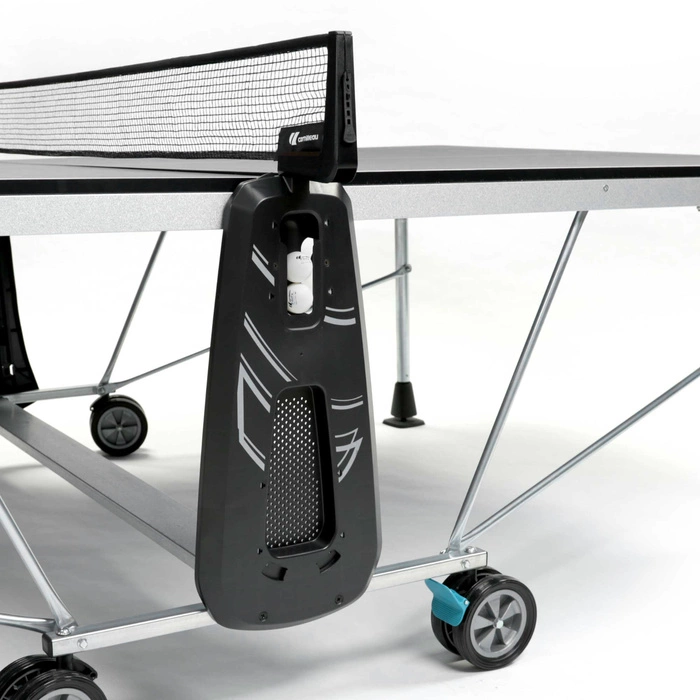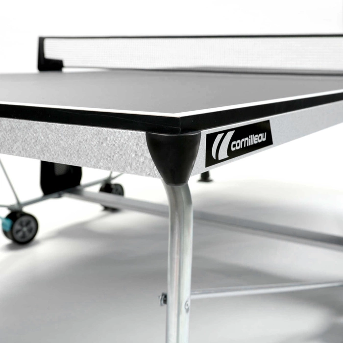 DUŻE KOŁA Z HAMULCAMI: Stoły ping pongowe Cornilleau posiadają duże podwójne koła. Takie rozwiązanie zwiększa toczenie kół oraz stabilność stołu. Z kolei dwa hamulce zapewniają doskonałą stabilność i bezpieczeństwo podczas gry. Jest to także szczególnie przydatne gdy stół jest przechowywany na lekko nierównej powierzchni.