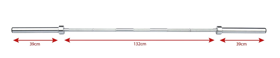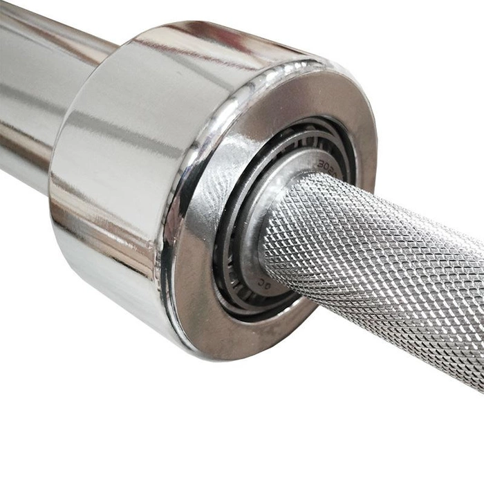 Wysokiej jakości, prosty gryf olimpijski z łożyskowaniem. Długość gryfu 220cm. Pozwala na założenie obciążeń olimpijskich (o średnicy otworu 50mm). Waga gryfu to ok 17kg, a jego maksymalne obciążenie sięga aż 350kg. Średnica moletowanego elementu chwytnego to ok 28mm. Wykonany z wysokiej jakości stali chromowanej. W zestawie z gryfem znajdują się dwa zaciski sprężynowe.