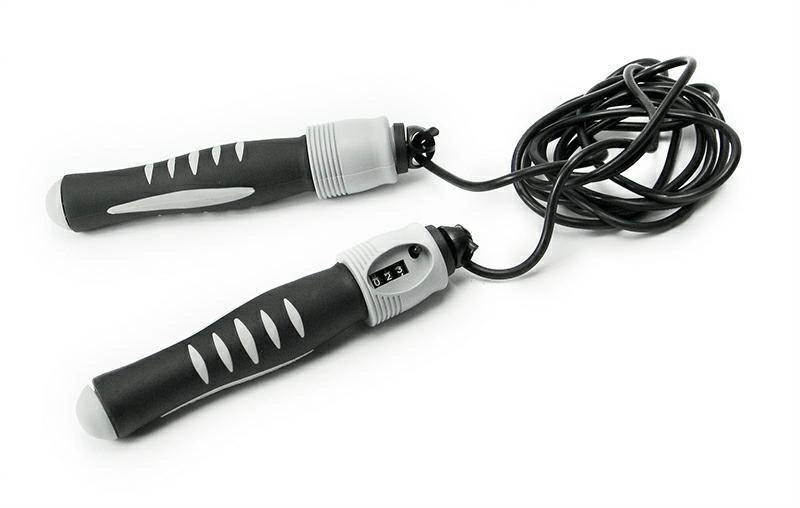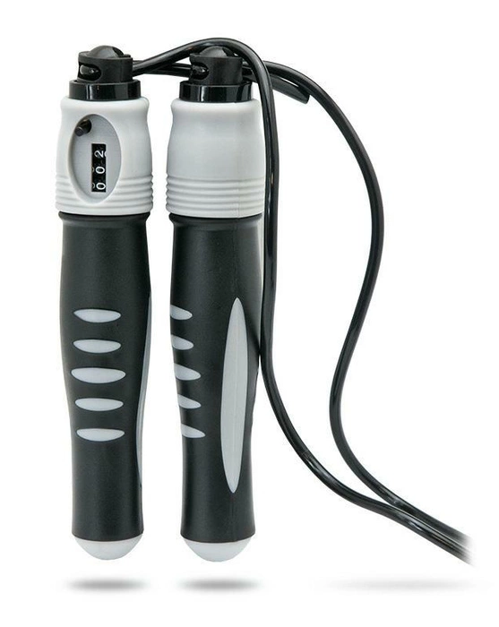 Doskonały przyrząd treningu wielu ćwiczeń aerobowych, wzmacniająco-wydolnościowych. Uchwyty pokryte warstwą antypoślizgowego tworzywa. Licznik obrotów wbudowany w rączkę. Możliwość zerowania wyniku. Linka PVC (ok 280cm) z możliwością regulacji długości.