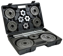 Zestaw hantli żeliwnych 2x10 kg Profit w walizce polecany jest dla osób ćwiczących siłowo. W środku znajduje się 12 talerzy żeliwnych o różnej wadze, zaciski śrubowe i 2 gryfy wykonane z hartowanej stali.