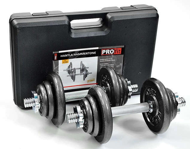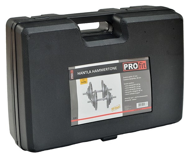 Hantle żeliwne 2 x 10 kg Profit Hammertone w walizce DK 4135